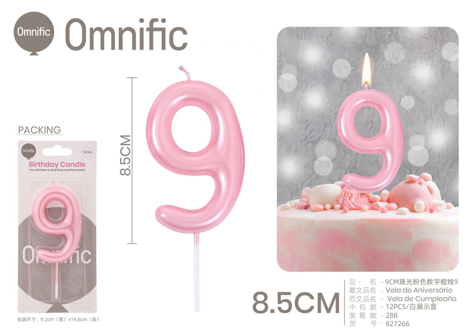 VELA NUMÉRICA PEROLADA ROSA 9CM
