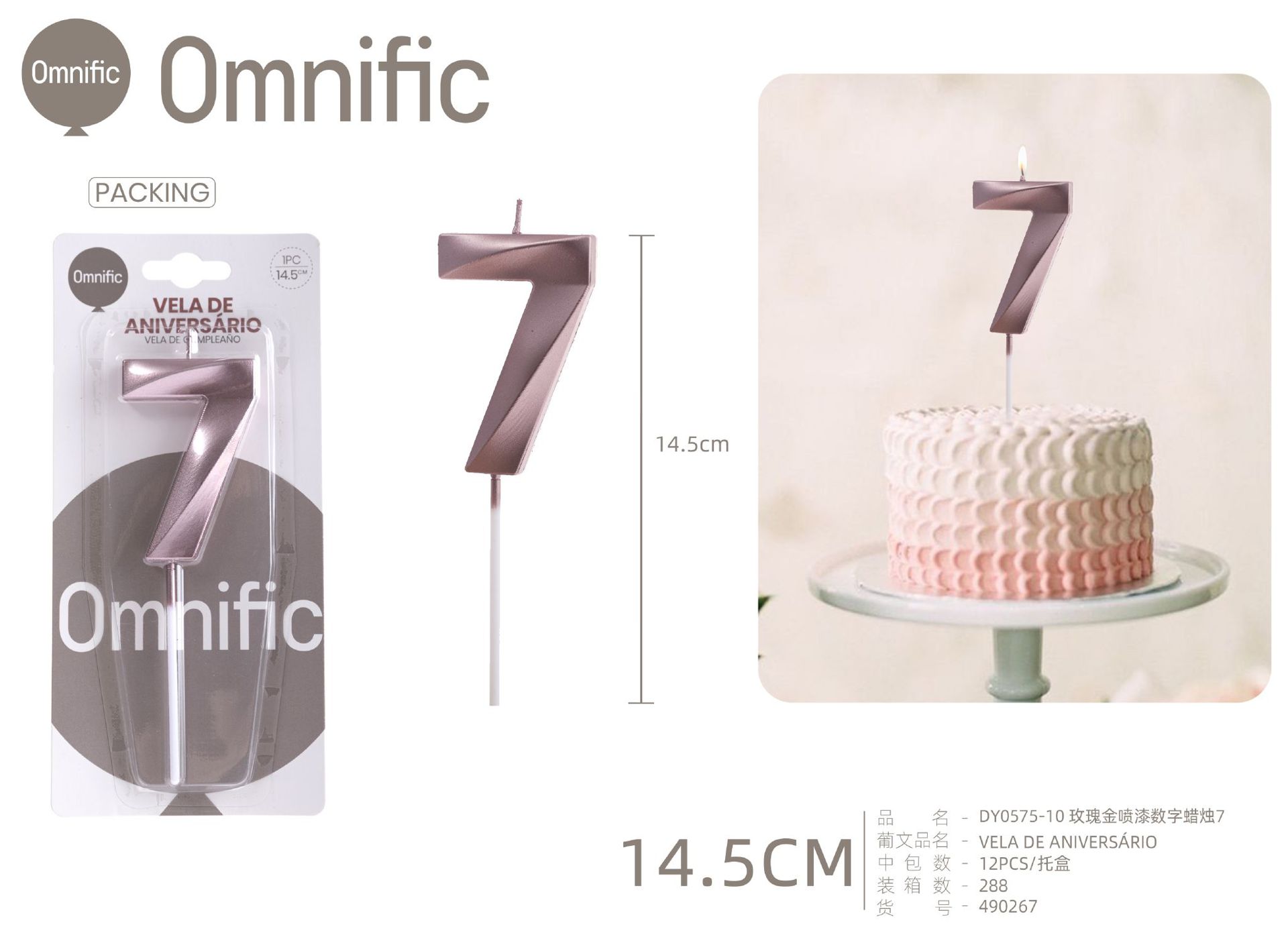 VELA NUMÉRICA ROSA CHOQUE INCLINADA 7CM