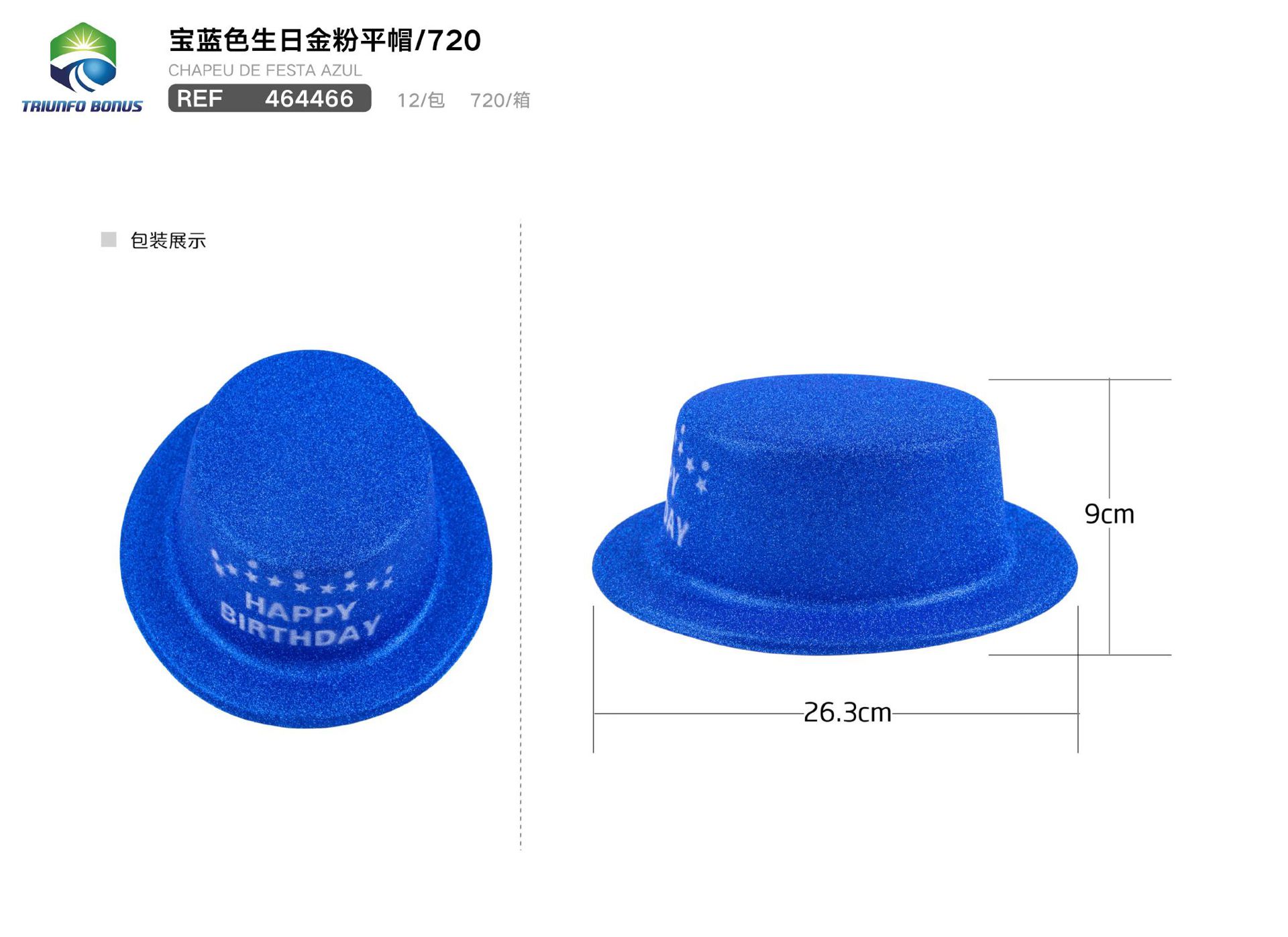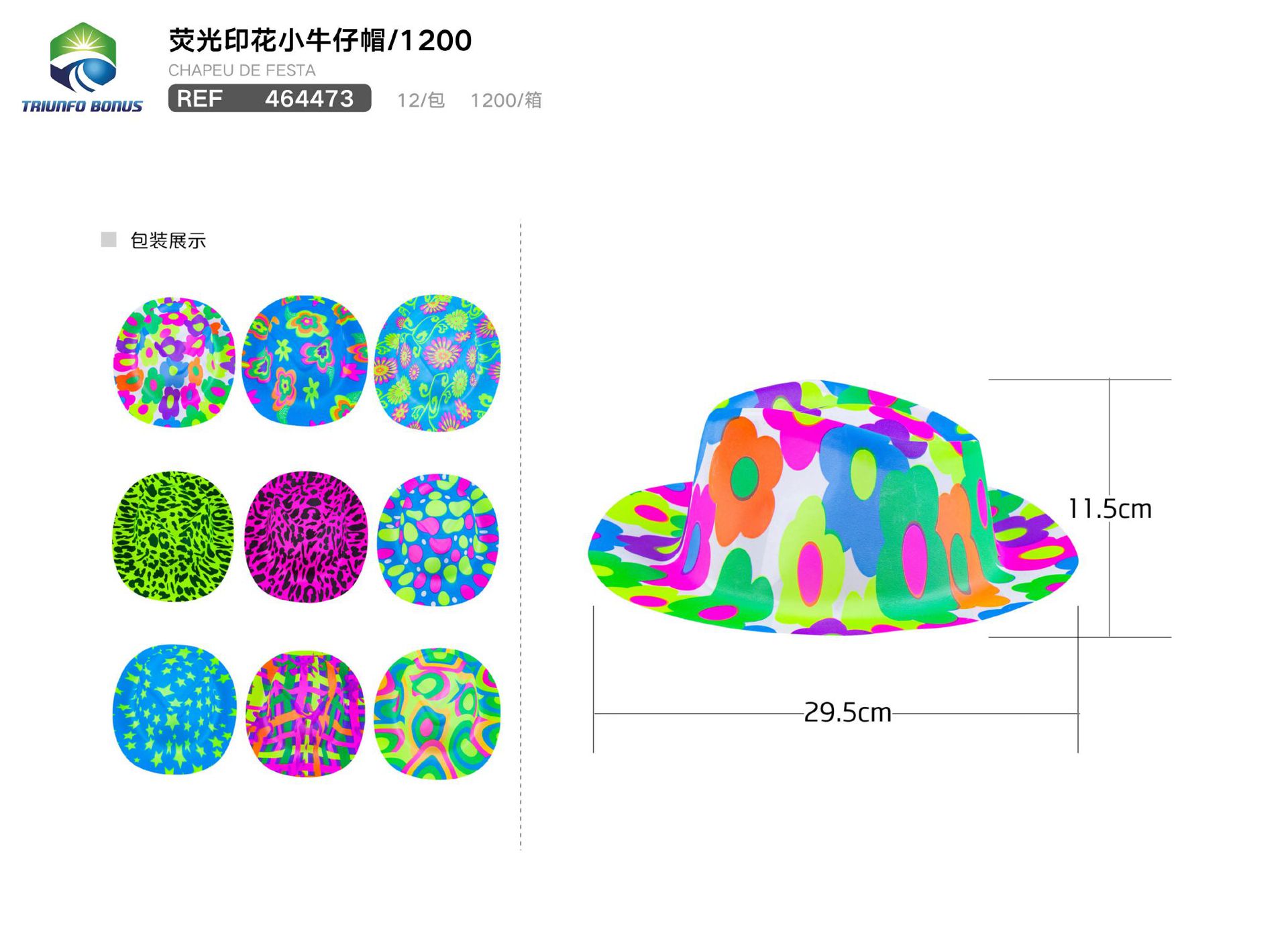 C.B. 5606858322162CHAPEU P/FESTA 12*18CM 6PCS